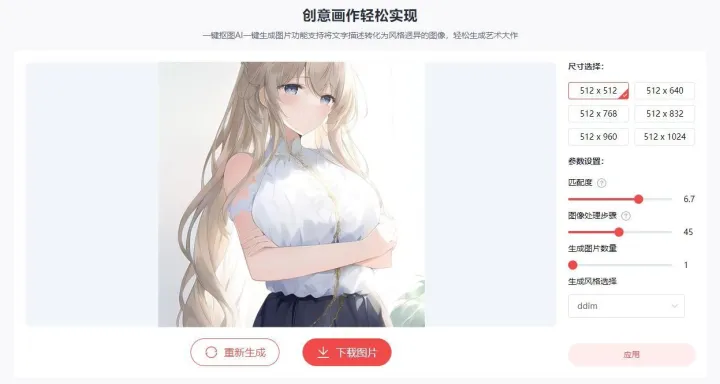 生成之后可以调整尺寸、匹配度、图片数量风格等等,生成后的图片还可以保存下来使用。