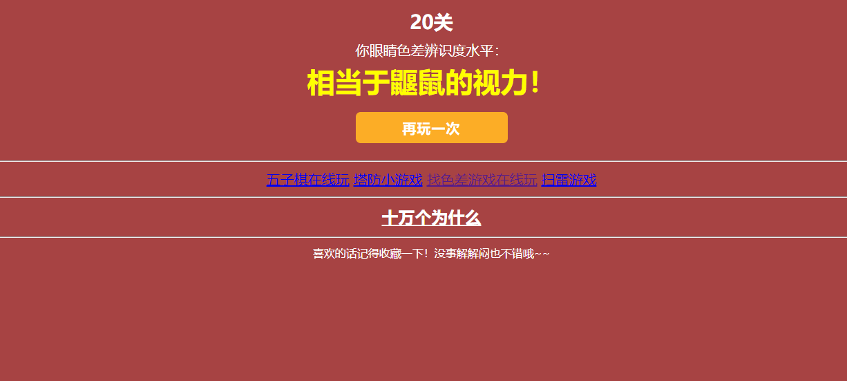 一个测试眼睛对颜色明暗度的网站,直接选择跟其他颜色不同的颜色方格就行,越到后面颜色的差别就越小,方格数也会增加,难度还挺高的。