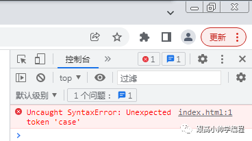 注意:JavaScript变量名不能是保留字(详细的保留字请自行搜索),否则会出现语法错误提示,如下图: