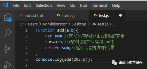 举个例子,编写一个实现两个数相加的函数,代码块如下: