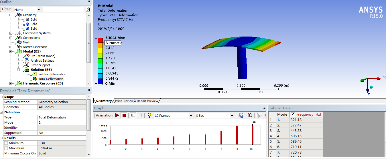 ansys可在模态分析的基础上进行谐响应分析: