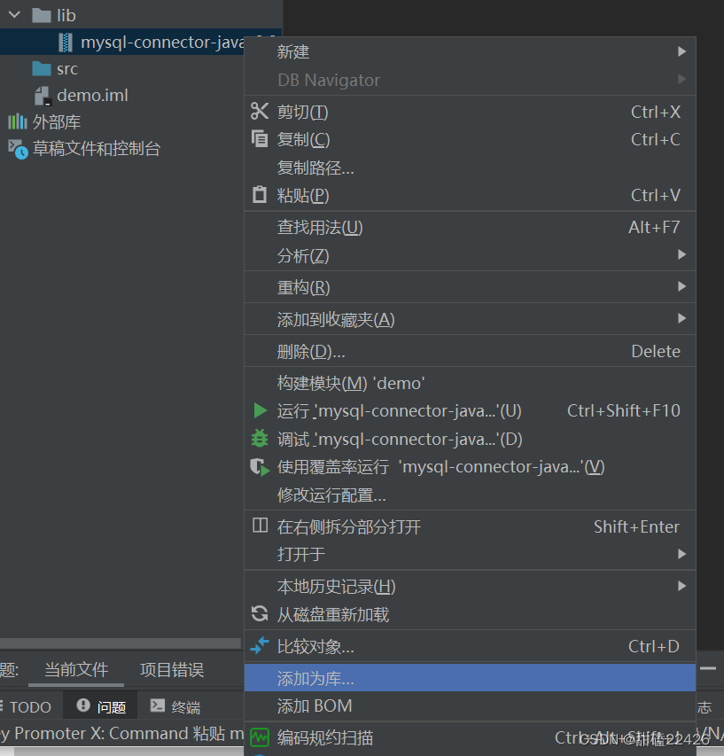 现在我们在刚才新建的模块demo新建一个目录lib,再把刚才那个jar包复制粘贴进去