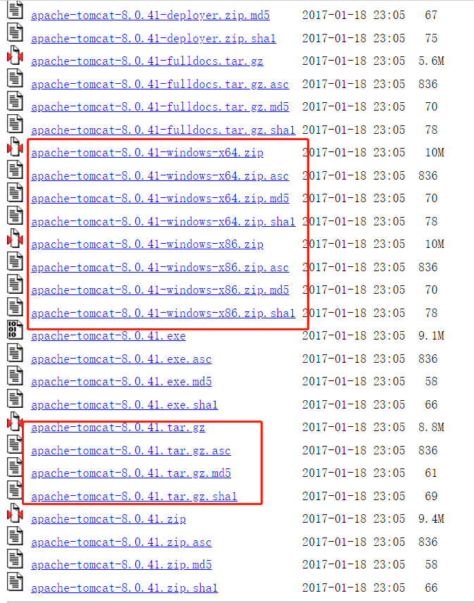 我们去官网看下tomcat的下载包上是否有区分:https://archive.apache.org/dist/tomcat/tomcat-8/v8.0.41/bin/ Index of /dist/tomcat/tomcat-8/v8.0.41/bin (apache.org)