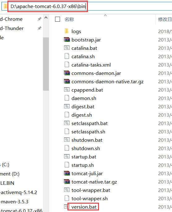 实现方式:在cmd命令下运行tomcat的version.bat文件