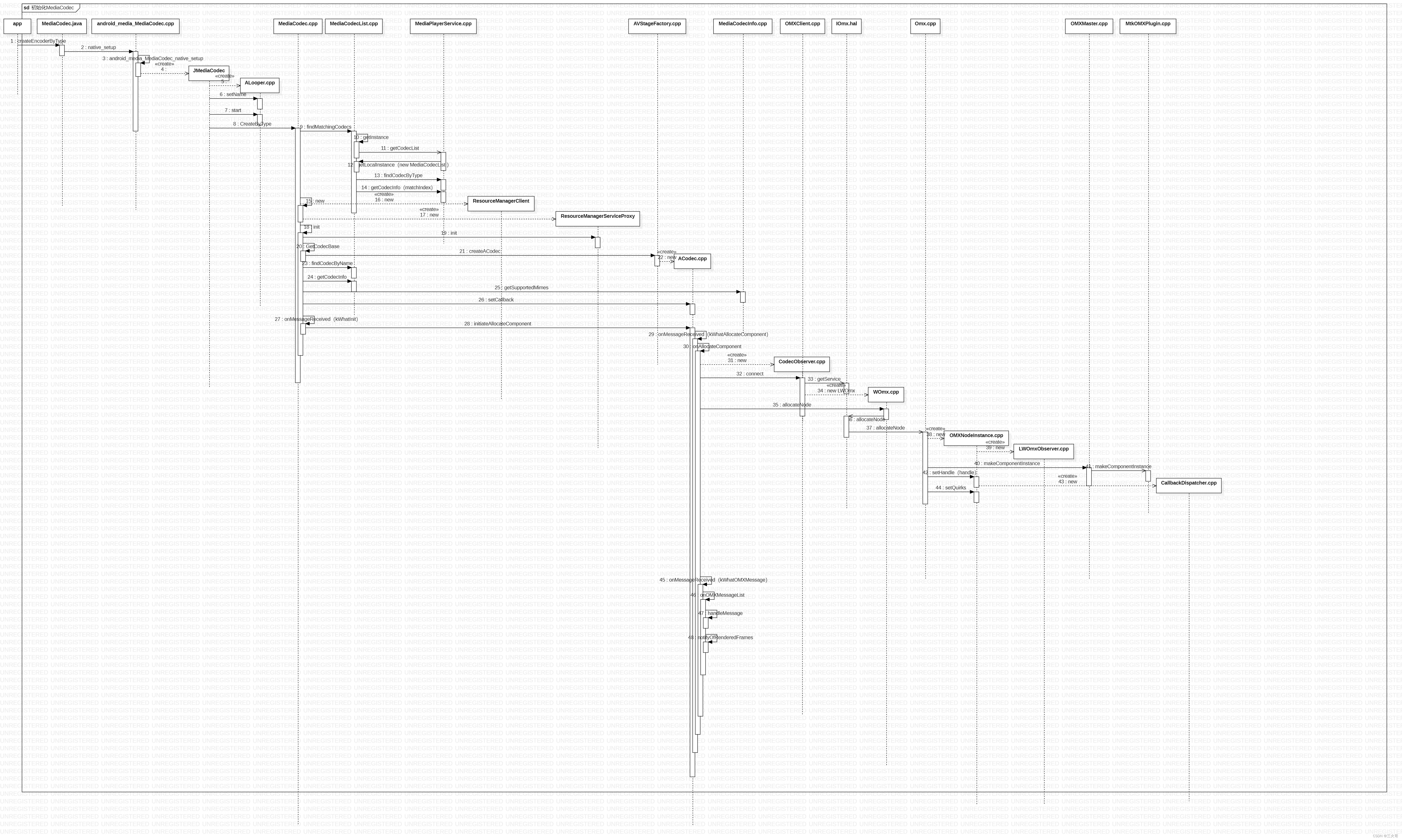 通过上面流程分析可知,MediaCodecList初始化是通过调用它的getLocalInstance函数,然后在里面new的MediaCodecList对象。在MediaCodec的CreateByType函数中new了MediaCodec对象。
