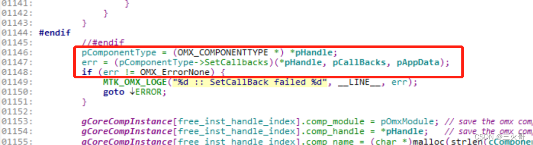 在调用Mtk_OMX_GetHandle的时候调用了SetCallbacks函数最后对应到MtkOmxVdecEx.cpp类里面的MtkVdec_SetCallbacks,里面调用到了它的SetCallbacks: