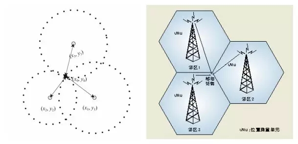 基站定位的原理也很简单:我们知道,距离基站越远,信号越差,根据手机收到的信号强度可以大致估计距离基站的远近,当手机同时搜索到至少三个基站的信号时(现在的网络覆盖这是很轻松的一件事情),大致可以估计出距离基站的远近;基站在移动网络中是唯一确定的,其地理位置也是唯一的,也就可以得到三个基站(三个点)距离手机的距离,根据三点定位原理,只需要以基站为圆心,距离为半径多次画圆即可,这些圆的交点就是手机的位置。