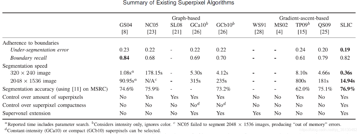 论文列举其他超像素方法,再提出SLIC算法进行对比。