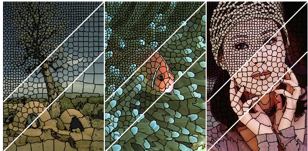 SL08,提出了一种通过确定将图像分割成更小的垂直或水平区域的最佳路径或接缝来生成符合网格的超像素的方法。使用类似于SeamCarving的图切割方法找到最佳路径。复杂的是,但这并不考虑预先计算的边界图,这强烈影响输出的质量和速度。