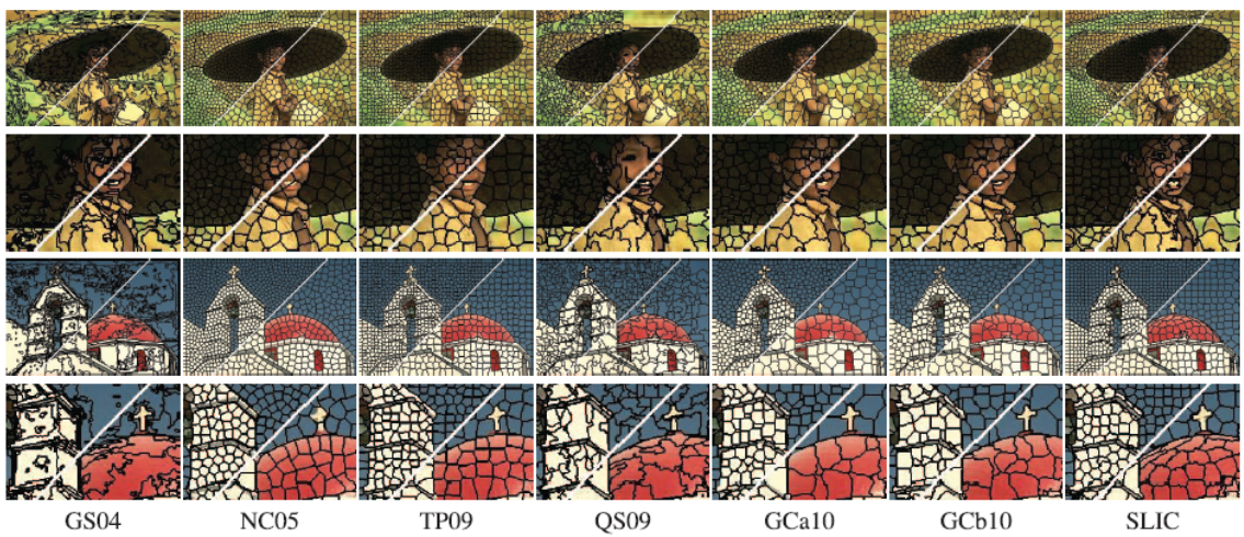 - 当作为预处理步骤用于降低的计算复杂度时,超像素应当快速计算,存储 器效率高且易于使用。