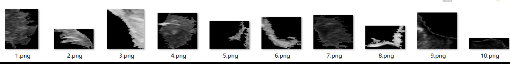 for i in range(1,maxn+1):a = np.array(segments == i)b = img * aw,h = [],[]for x in range(b.shape[0]):for y in range(b.shape[1]):if b[x][y] != 0:w.append(x)h.append(y)c = b[min(w):max(w),min(h):max(h)]c = c*255d = c.reshape(c.shape[0],c.shape[1],1)e = np.concatenate((d,d),axis=2)e = np.concatenate((e,d),axis=2)img2 = Image.fromarray(np.uint8(e))img2.save(path +'\\'+str(i)+'.png')print('已保存第' + str(i) + '张图片')wid,hig = [],[]