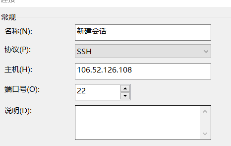 打开xshell,文件,新建,将106.52.126.108粘贴到主机号