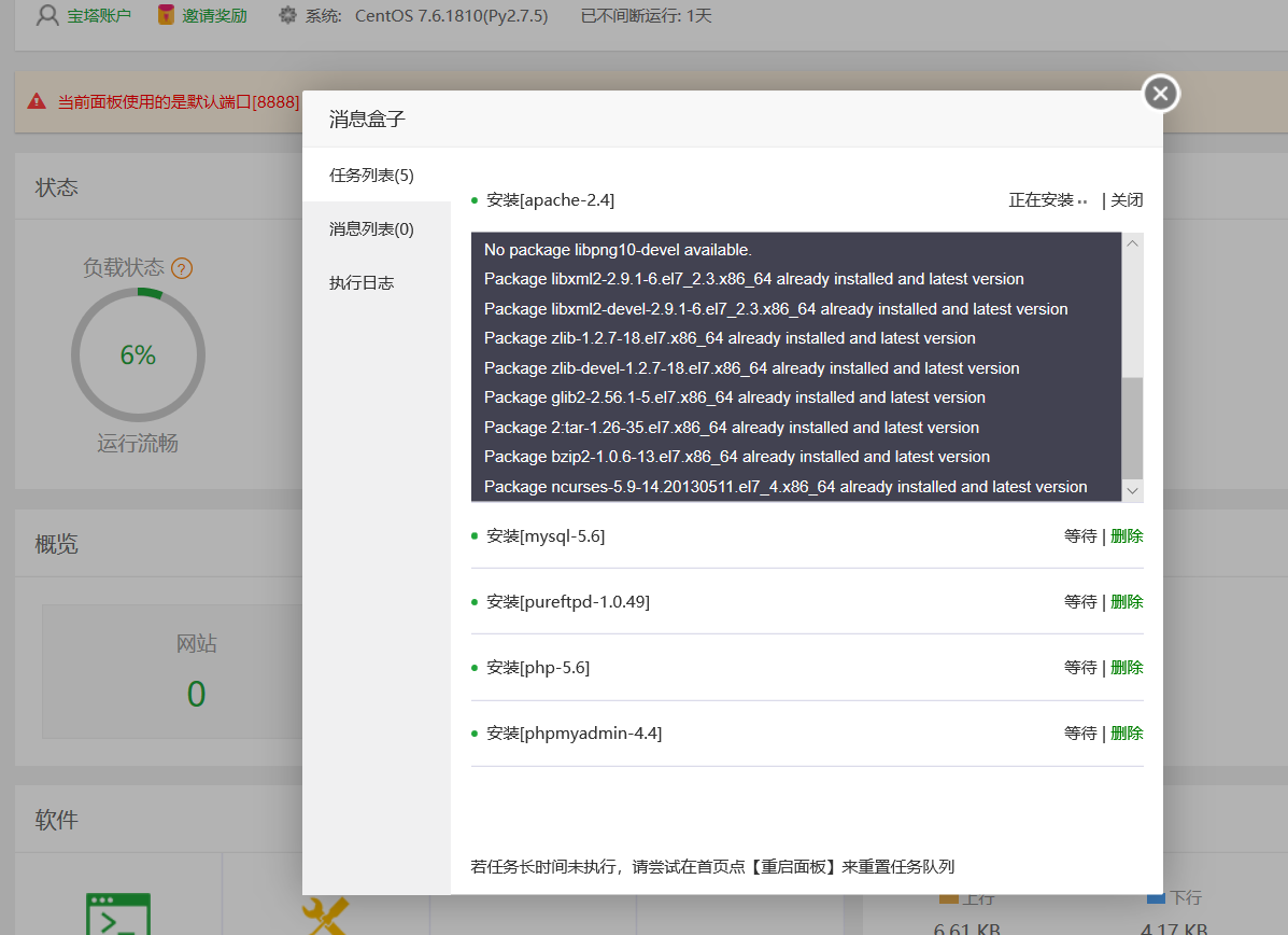 等待安装完成就好了,上面的命令是安装wget宝塔界面。