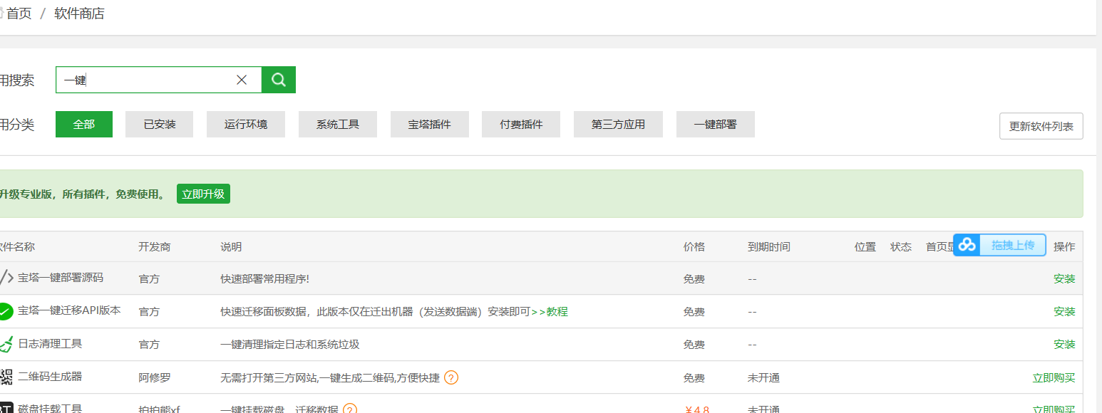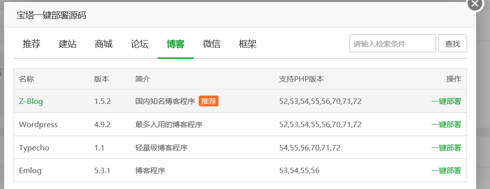 安装完成后,需要到软件商店下载宝塔一键部署,通过它来安装wordPress。