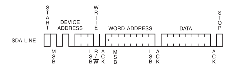 {u8 deviceaddr;deviceaddr=0xa0+(deviceAddr<<1)+EEPROM_WRITE;START(); //STARTSendByte(deviceaddr);//DEVICE ADDRESSSendByte(wordAddr); //WORD ADDRESSSendByte(data); //DATASTOP(); //STOPI2C_delay(5000); //tWR=M5ms return SUCCESS;