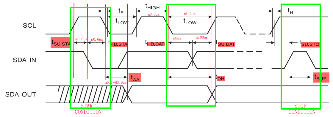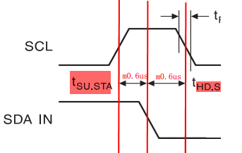 描 述 :产生起始条件,在SCL高电平期间,SDA从高到低表示通信开始
