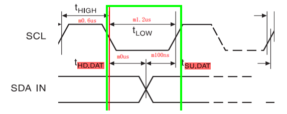 {SCL_H;SDA_H; /* 为产生 START 做铺垫 */I2C_delay(1); /* tSU.STA=m0.6us */SDA_L; /* SDA线从高到低,START */I2C_delay(1); /* tHD.STA=m0.6us */SCL_L;