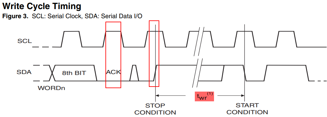 是不是有点奇怪BYTE WRITE 和 PAGE WRITE 后的“tWR=M5ms”?