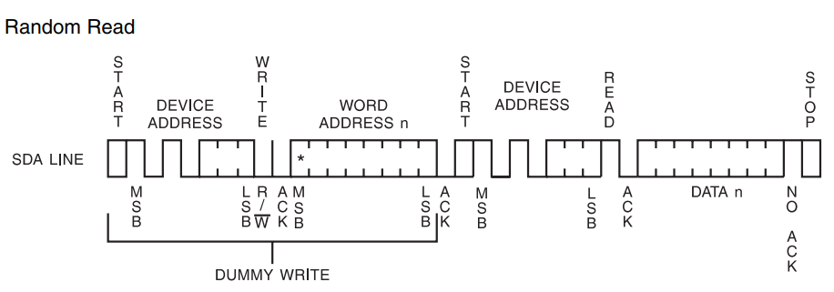 {u8 deviceaddr,data;deviceaddr=0xa0+(deviceAddr<<1)+EEPROM_WRITE;START();SendByte(deviceaddr);SendByte(wordAddr);deviceaddr=0xa0+(deviceAddr<<1)+EEPROM_READ;START();SendByte(deviceaddr);data=ReadByte(DISABLE);STOP();return data;