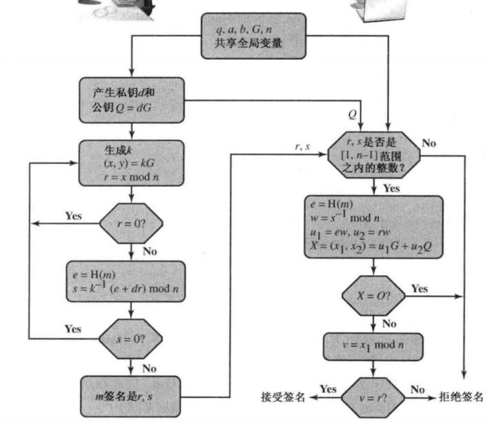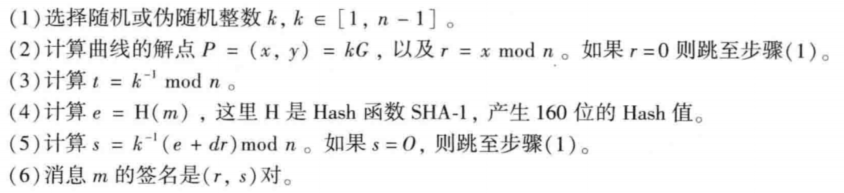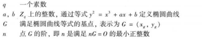 - 参与数字签名的所有通信方都使用相同的全局参数,用于定义椭圆曲线以及曲线上的基点