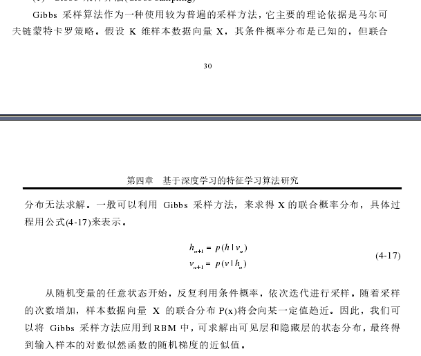- 使用采样法中,吉布斯采样根据全局的条件概率已知,但联合分布不知,使用马尔可夫链进行N步采样,最终联合分布趋于一个稳定值,作为最后的全局值用在梯度更新中。(每次更新都需要进行N次吉布斯采样)
