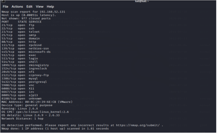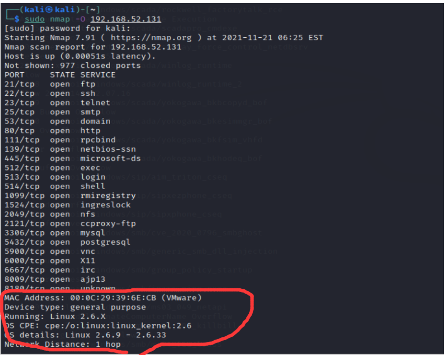 2.利用NMAP扫描Metasploitable2的操作系统类型