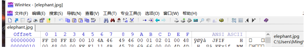 1.elephant.jpg不能打开了,利用WinHex修复,说明修复过程