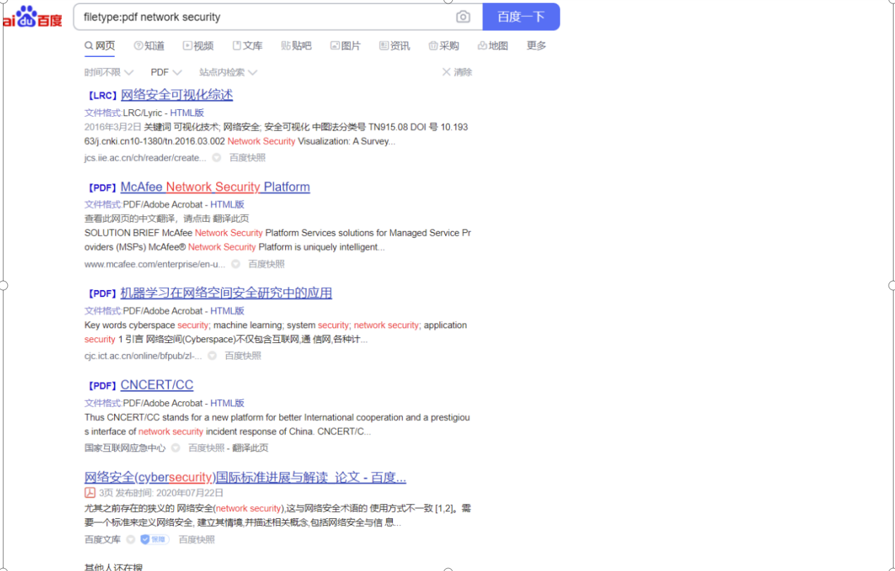1.搜索麻省理工学院网站中文件名包含“network security”的pdf文档。