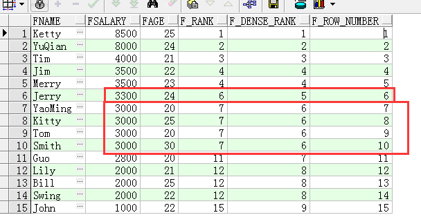 DENSE_RANK() OVER(ORDER BY fsalary desc) f_DENSE_RANK,