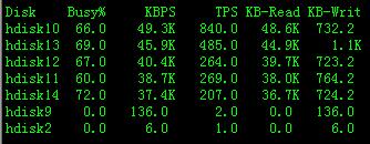 Busy%:指明物理磁盘在活动状态的时间百分比;当磁盘的Busy%持续大于85%时,即认为磁盘相当繁忙,这就值得关注。