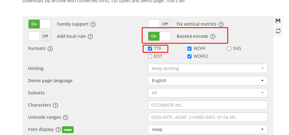 二、转换ttf文件(原因: 小程序的wxss文件font-face的url不接受http地址作为参数,可以接受base64,因此可以先将字体文件下载后,转换为base64,然后引用。