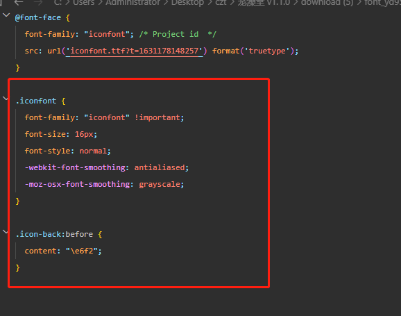 1.打开在阿里icon中下载的iconfont.css,复制 @font-face以外的内容,到stylesheet中。