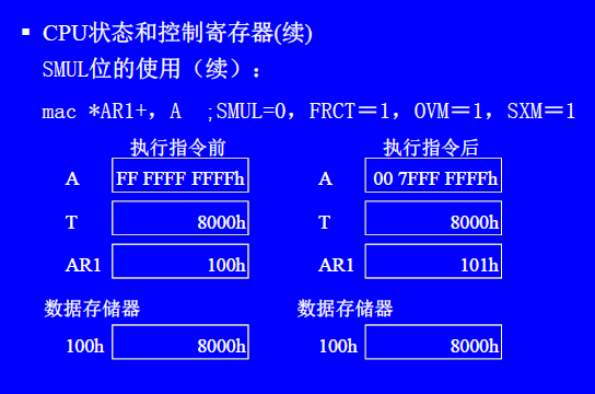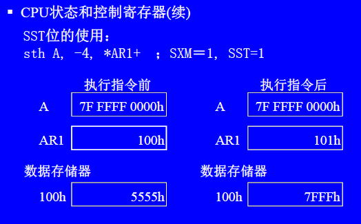 - SST: 存储饱和位,当40位的寄存器中的结果超过32位时,在把数据存放到32bit内存中时,是否进行饱和处理,还是截位处理。