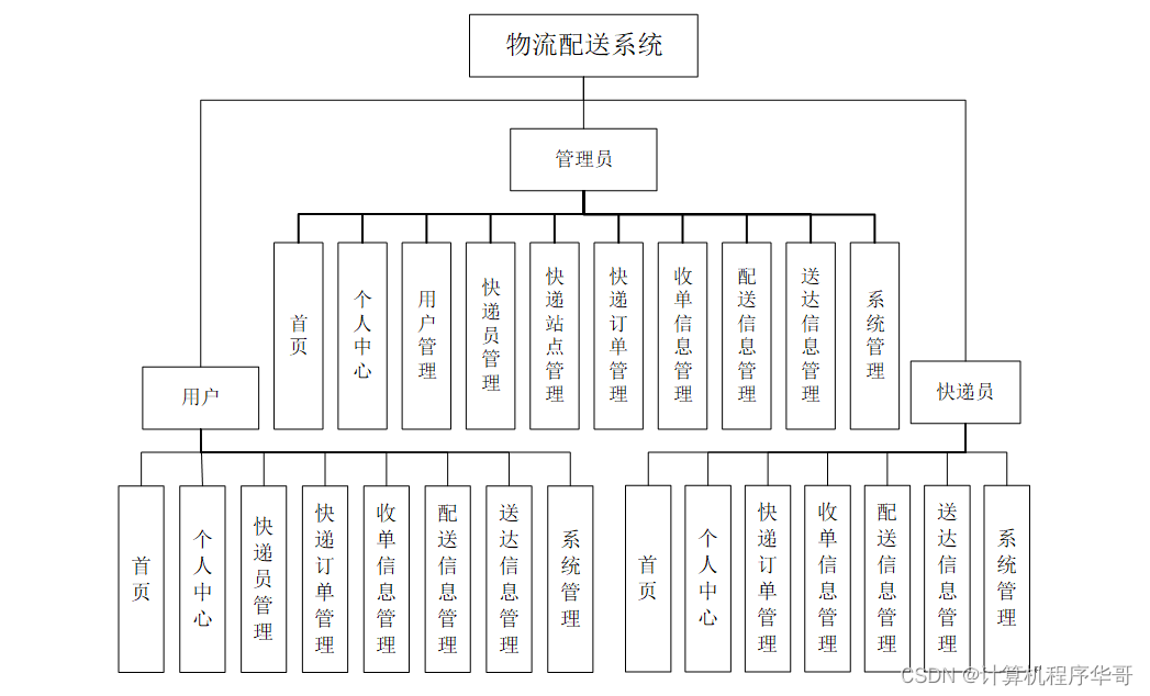 考虑到实际生活中在物流配送管理方面的需要以及对该系统认真的分析,将系统权限按管理员,用户和快递员这三类涉及用户划分。
