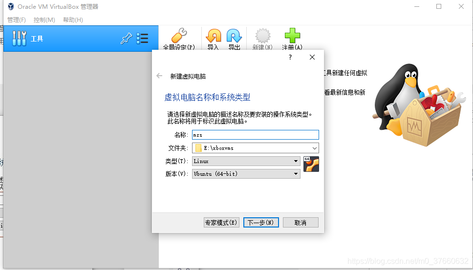 点击新建,修改类型为Linux,版本为Ubuntu64位