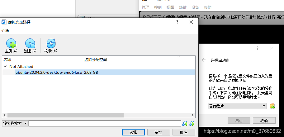 点击注册,找到之前下载的ubuntuiso文件,然后点击启动