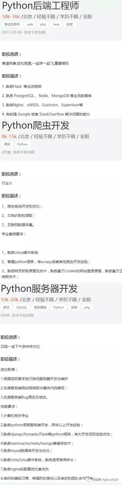 现在百度、新浪、搜索等大型互联网公司都有相应的Python高薪职位,但想要找到好的工作,你必须具备好的Python基础,积累丰富的实践才能达到企业用人需求。
