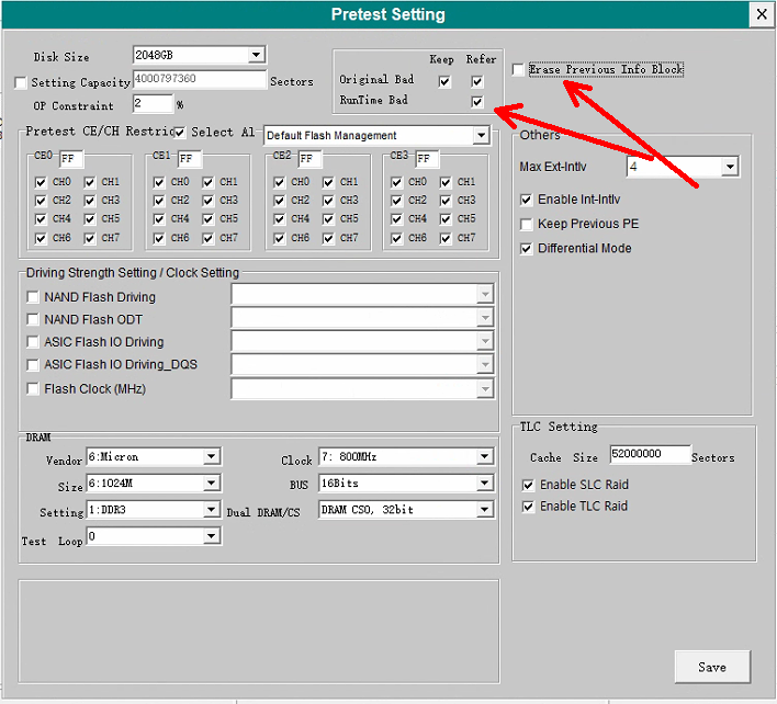 这个选项的意思顾名思义,就是在开卡的过程中擦掉固态里原有的信息,这样就方便写入新的固件进去