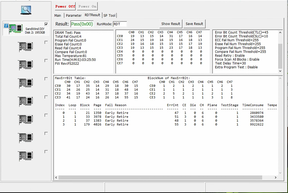 接下来就是如何设置RDT后开卡,让固态记住这4个坏快从而屏蔽它们