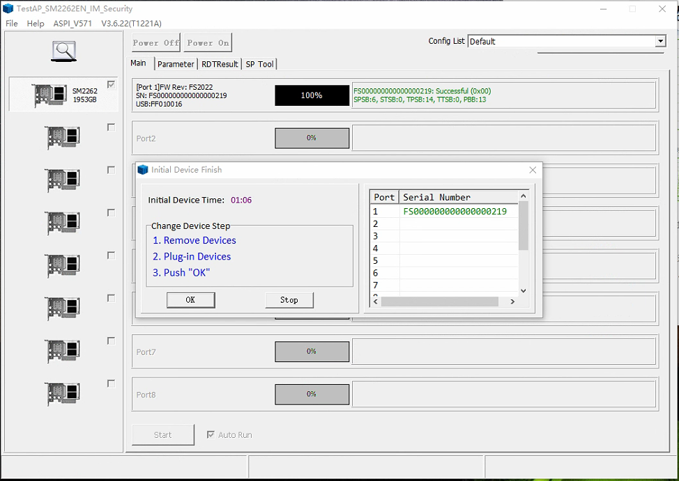 从量产部落下载sm2262en软件,进入软件设置,密码是两个空格