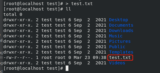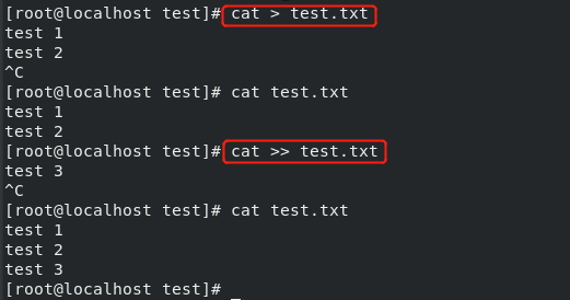 通常用于将一个命令的输出重定向到一个新文件中,如果没有命令,则会创建一个 0KB 的空文件。不允许在创建文件时向其中输入任何文本。