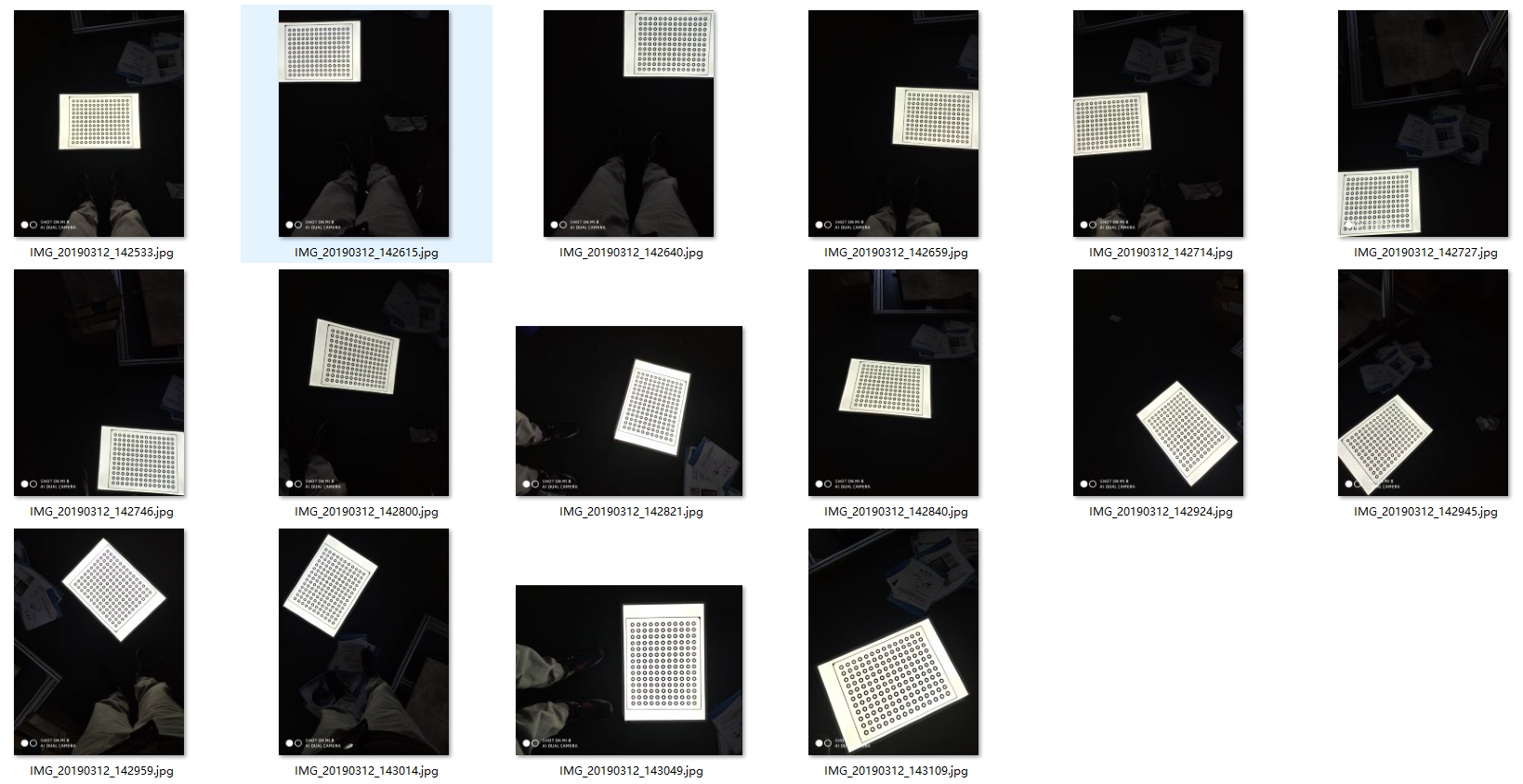 1)相机标定:使用opencv自带的相机标定api即可非常容易地对相机进行标定,抽时间我会提供相机标定的程序,以下为我采集的标定图像;