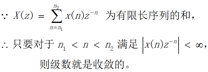 第二项为有限长序列,收敛域为 ,第一项为z的正幂级数,根据阿贝尔定理,其收敛域为