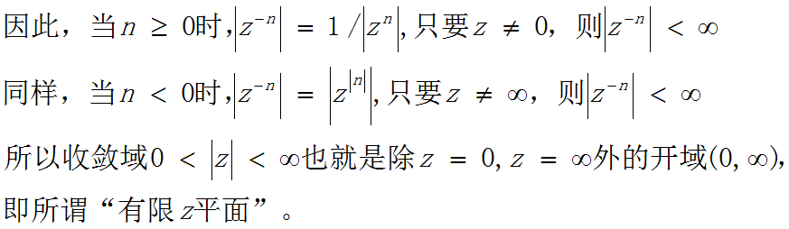 (1)收敛域是一个圆环,有时可向内收缩到原点,有时可向外扩展到∞,只有的收敛域是整个Z平面;