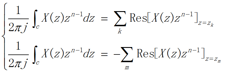 其中,c是在变量v平面上,X(z/v),H(v)公共收敛域内环原点的一条逆时针单封闭围线。