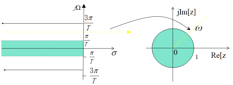 σ=0,对应s平面的虚轴,r=1,即z平面单位圆;