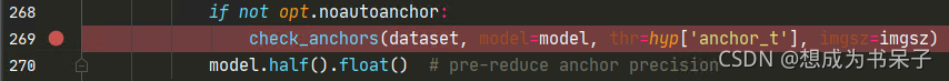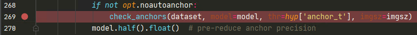 if bpr < 0.98: # threshold to recomputeprint('. Attempting to improve anchors, please wait...')na = m.anchor_grid.numel() // 2 # number of anchorstry:anchors = kmean_anchors(dataset, n=na, img_size=imgsz, thr=thr, gen=1000, verbose=False)except Exception as e:print(f'{prefix}ERROR: {e}')new_bpr = metric(anchors)[0]if new_bpr > bpr: # replace anchorsanchors = torch.tensor(anchors, device=m.anchors.device).type_as(m.anchors)m.anchor_grid[:] = anchors.clone().view_as(m.anchor_grid) # for inferencem.anchors[:] = anchors.clone().view_as(m.anchors) / m.stride.to(m.anchors.device).view(-1, 1, 1) # losscheck_anchor_order(m)print(f'{prefix}New anchors saved to model. Update model *.yaml to use these anchors in the future.')else:print(f'{prefix}Original anchors better than new anchors. Proceeding with original anchors.')