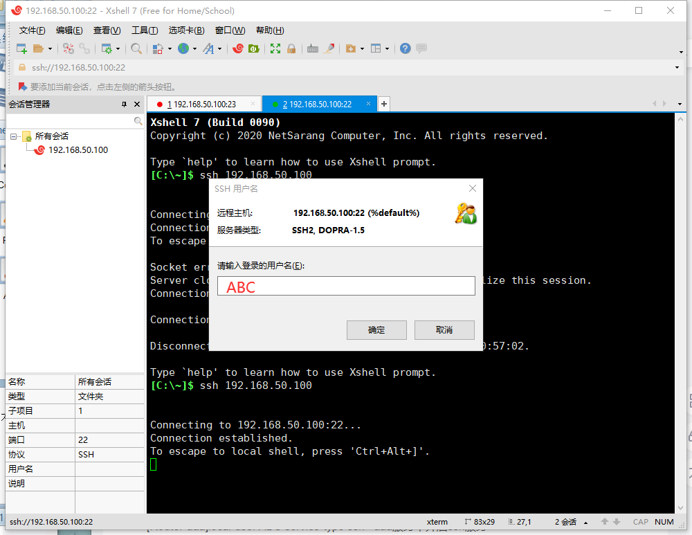 测试结果可以正常使用用户名和密码的方式SSH远程登录AR1