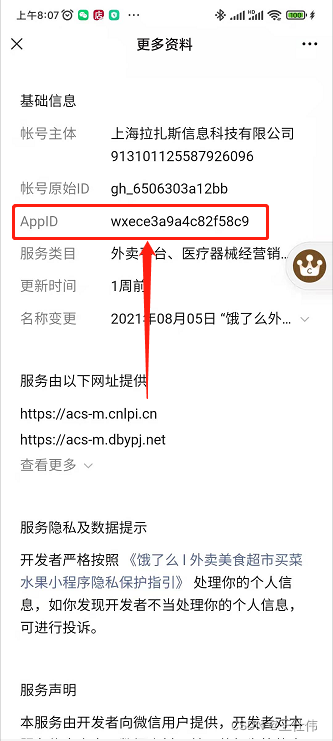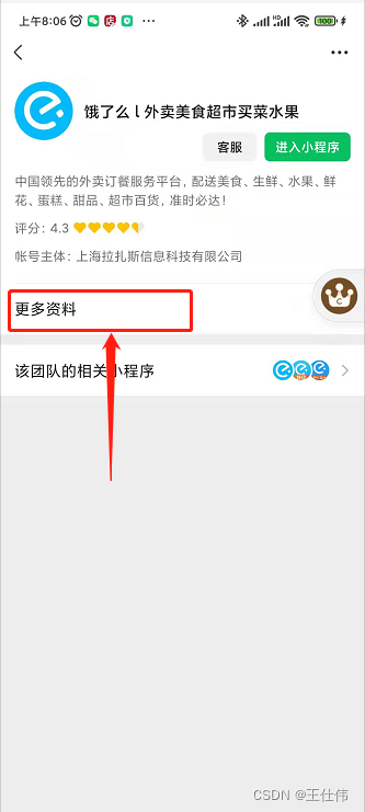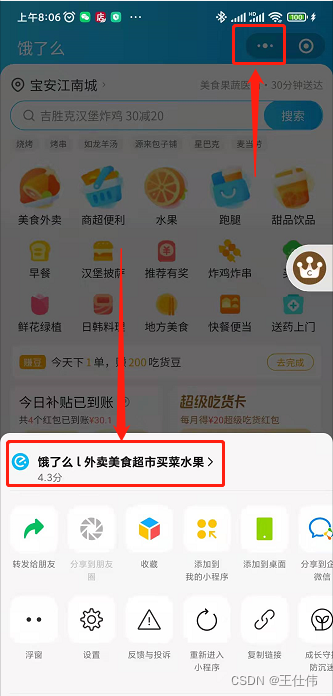 打开你需要获取appid的小程序,这里以“饿了么”小程序为例,然后点击右上角的