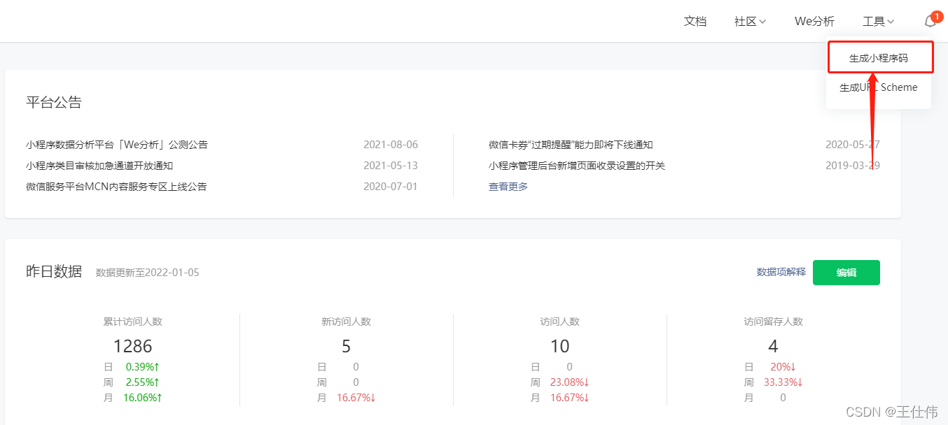 登录你的小程序的微信公众平台https://mp.weixin.qq.com点击右上角的工具,进入后是下面的页面